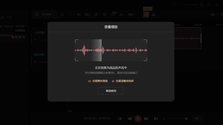 单条音轨,音量一键调整;多道音轨,更能大大节约音量统一的时间。让许多播客创作者烦恼的小问题,这不就解决啦!